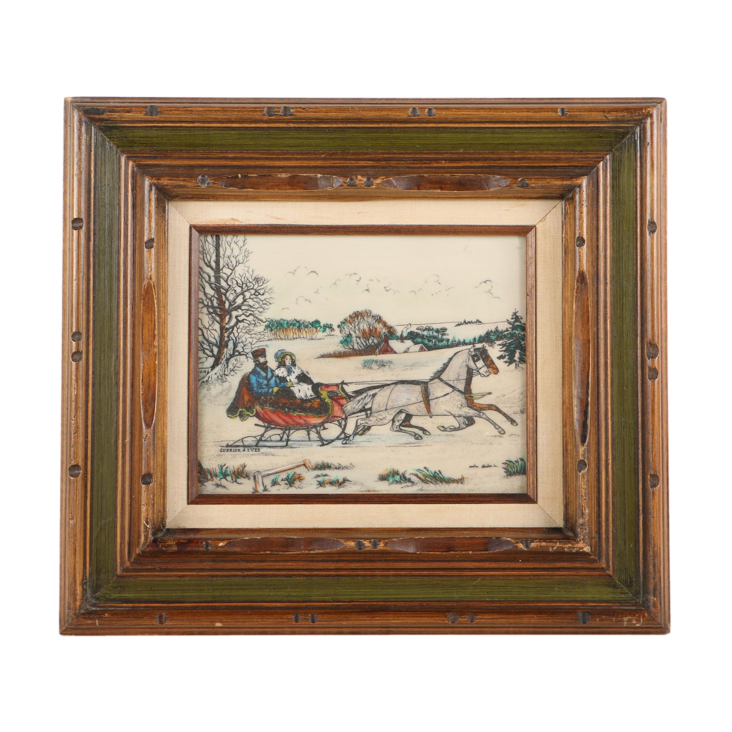 Reproduction Currier Ives Print On Resin Ebth